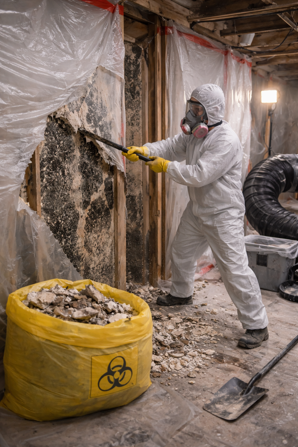 When key job controls are unconfirmed (example: containment type, negative air, respirator program details, waste destination), the SOP places STOP GATES at the exact step where the confirmation is required. This prevents crews from drifting past a critical control.